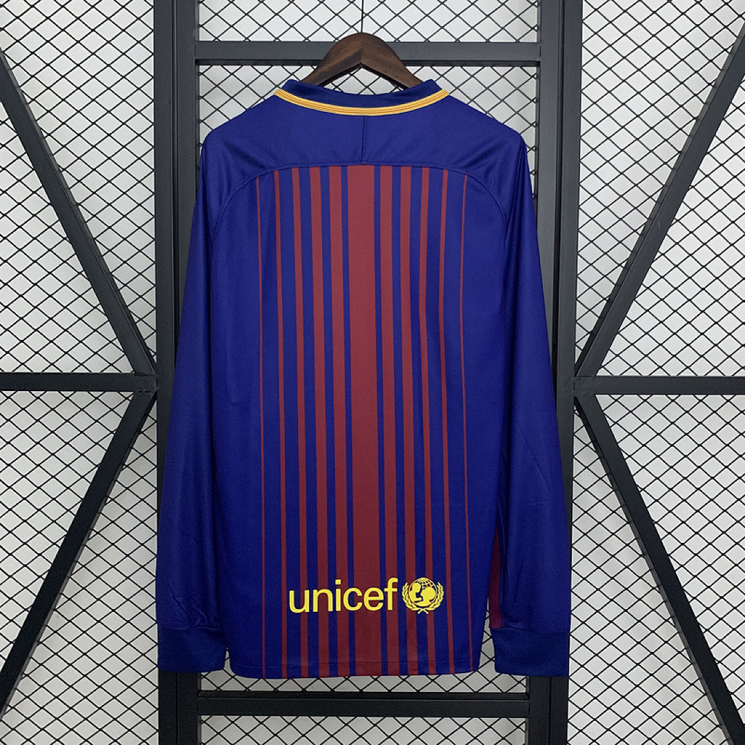 17-18 Barcelona Maillot Domicile Retro Manches Longues